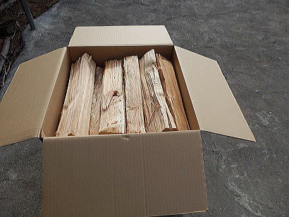 ヒノキ薪(皮なし)ダンボール入りで発送