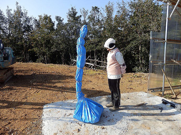 クヌギ4~5年苗木の梱包は高さが180~200㎝ですが根の部分が大きな為